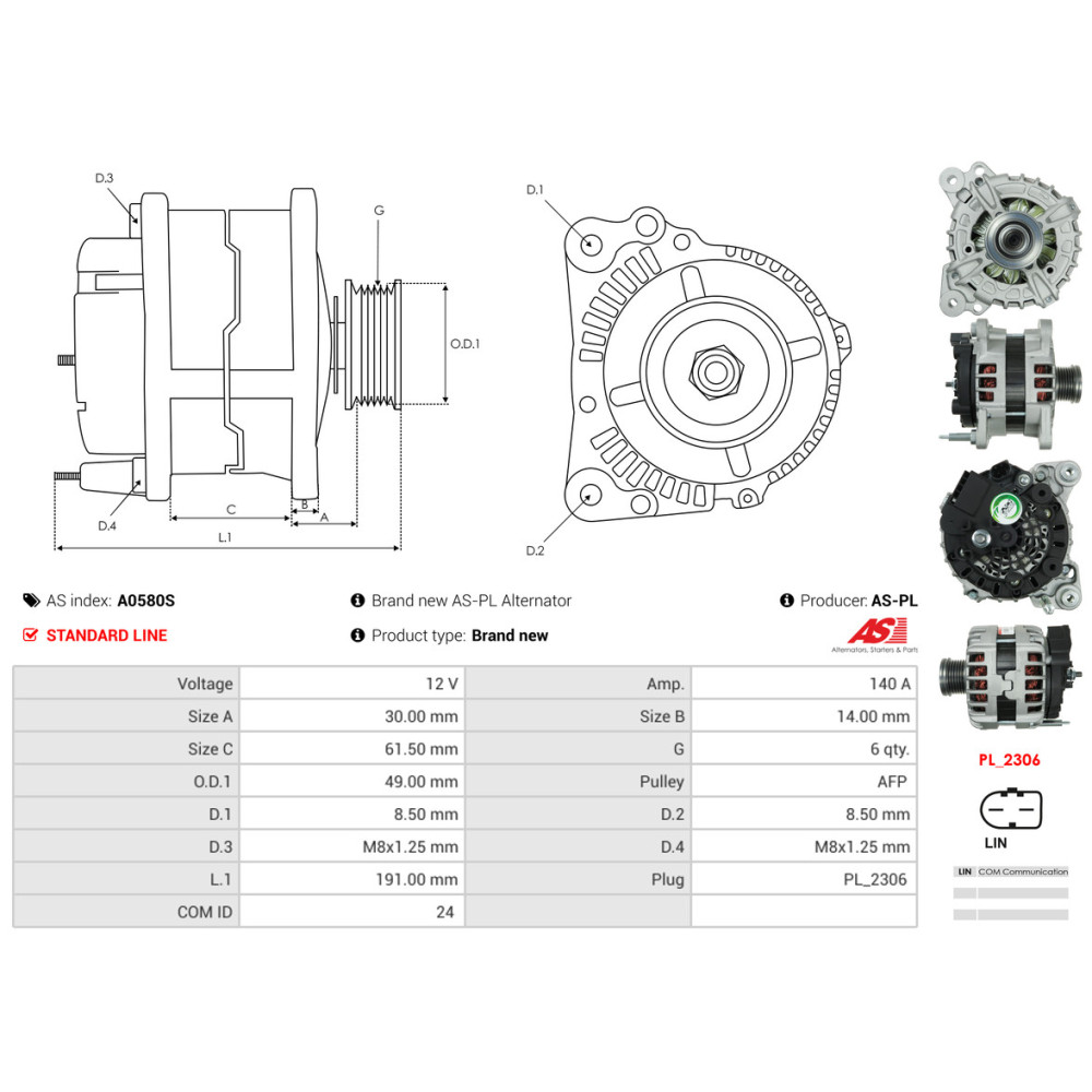 Laturi Audi A3 Limousine (8VS, 8VM)