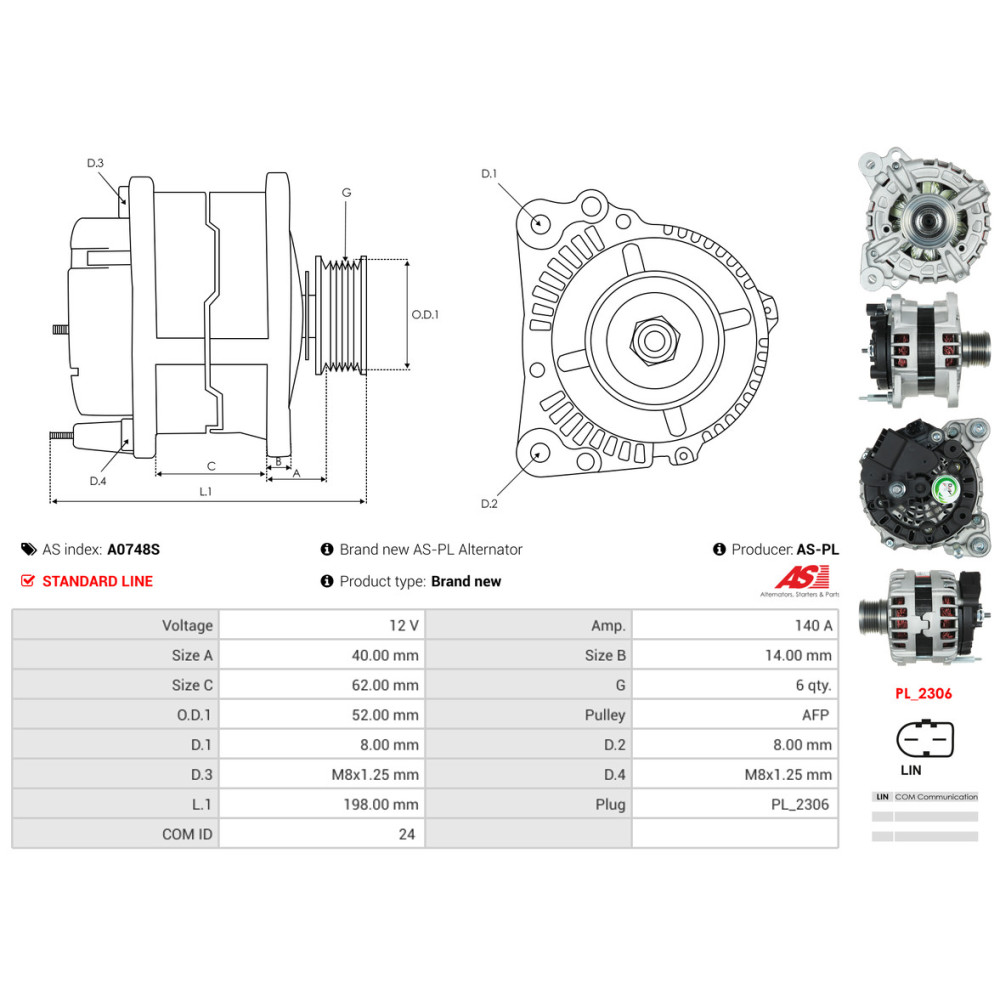 Laturi Audi A3 Sportback (8VA, 8VF)